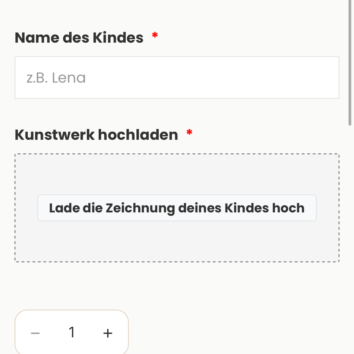 Nein! Wir optimieren jede Zeichnung digital. Kleine Flecken, Knicke oder Schatten werden entfernt, während der authentische Charakter erhalten bleibt. Die "Unvollkommenheiten" der Kinderzeichnung bleiben natürlich - das macht es echt!